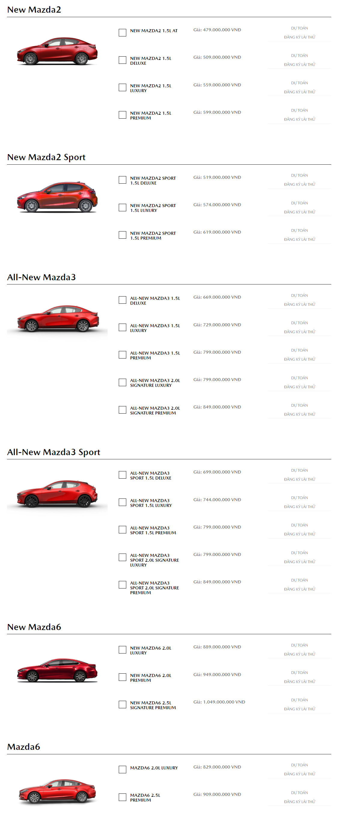 Bảng giá và các chương trình ưu đãi của xe Mazda trong tháng này như sau: