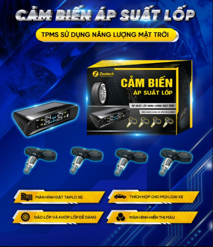 Sản phẩm cảm biến áp suất lốp năng lượng mặt trời Zestech là thiết bị thực hiện chức năng kiểm soát tình trạng lốp xe nhờ 4 van cảm biến được lắp trong lốp. Sau đó sẽ hiển thị thông số lên màn hình pin mặt trời đặt tại taplo để người lái tiện theo dõi kiểm tra.