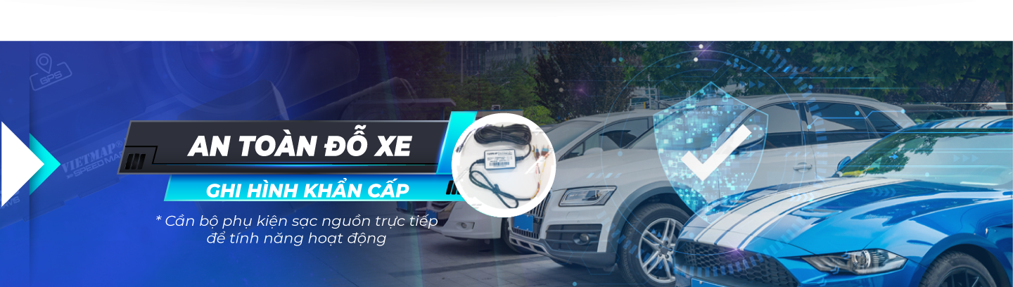 Ngoài ra Khi trang bị phụ kiện sạc nguồn trực tiếp, VIETMAP SpeedMap M1 sẽ kích hoạt tính năng ghi hình đỗ xe. Trong trường hợp có tác động do ngoại lực khi xe tắt máy SpeedMap M1 sẽ tự khởi động và tiến hành ghi hình khẩn cấp.