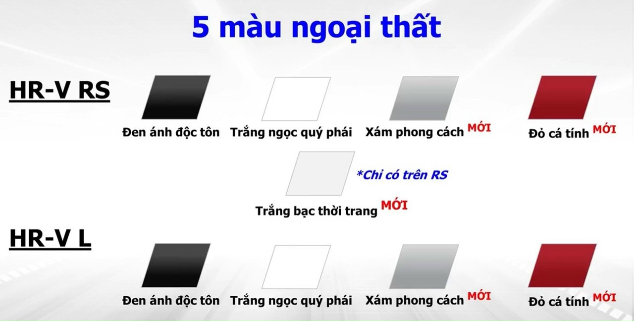 Honda HRV 2022 mới ra mắt ngày 15/06/2022 có 2 phiên bản Honda HRV L và Honda HRV RS, có 5 màu chọn lựa.
