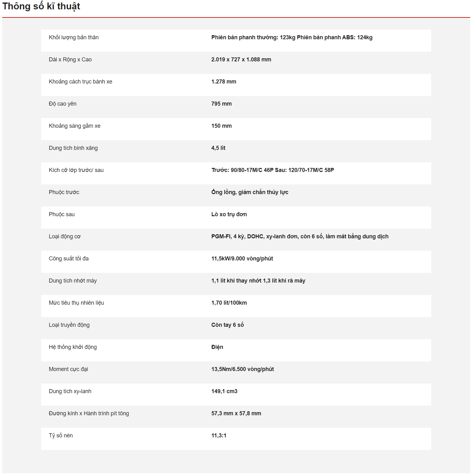 * Áp dụng cho phiên bản Camo, Đen mờ, Đường đua, Thể thao phanh ABS