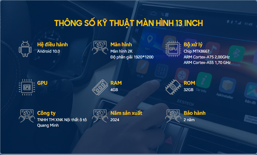 Siêu phẩm Màn hình Android ô tô thông minh ZESTECH MÀN HÌNH 13 INCH - Giải Pháp Màn Hình Ô Tô Đẳng Cấp Quốc Tế mang đến trải nghiệm lái xe an toàn và hoàn hảo. Kết hợp với các công nghệ tiên phong, MÀN HÌNH 13 INCH chắc chắn là sự lựa chọn hợp lý về chi phí khi đầu tư màn hình android cho ô tô của bạn.