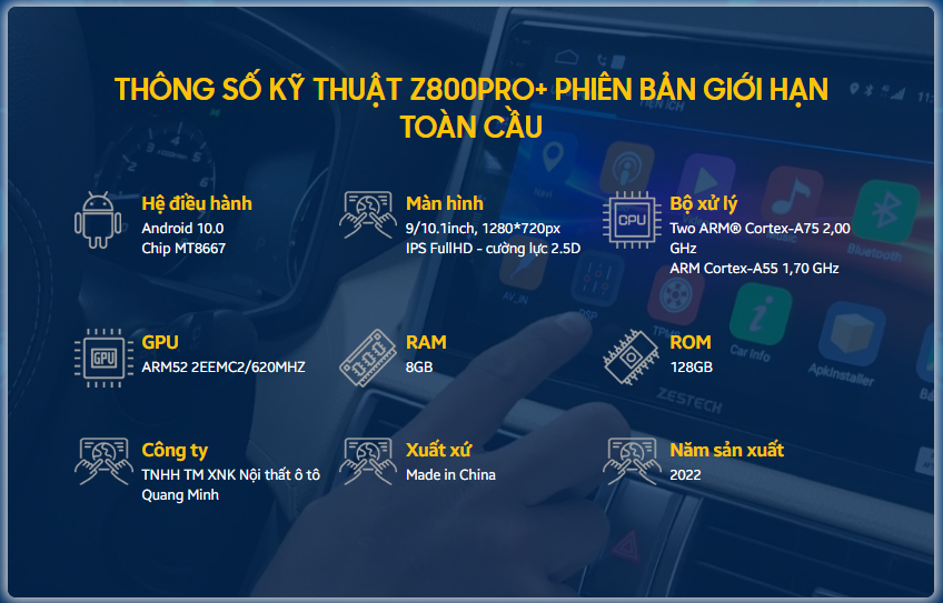 Zestech Z800 Pro+ là bước tiến đột phá vượt bậc của Zestech. Hiếm có dòng sản phẩm màn hình nào trên thị trường sở hữu cấu hình khủng như Z800Pro+ với RAM 8GB + ROM 128GB.