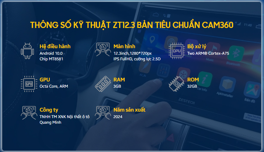 ZT12.3 inch là màn hình liền camera 360 giúp quan sát toàn cảnh mọi điểm mù xung quanh xe.